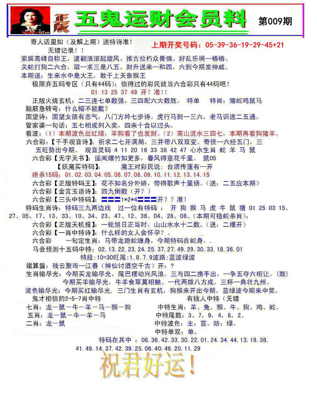 正版五鬼运财会员料